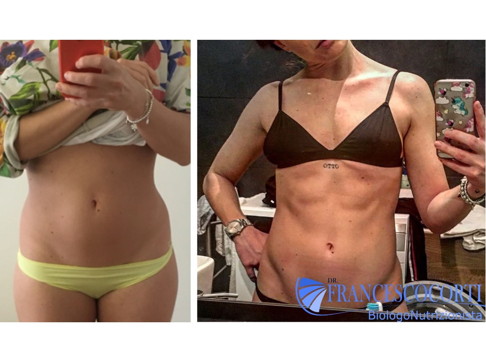 Giovane ragazza alla ricerca di un miglior stato di forma fisica e di uno stile alimentare sano da seguire nel quotidiano e da protrarre nel tempo. Tra gli aspetti più interessanti della trasformazione, oltre al calo ponderale di 10kg e al mantenimento (anzi, leggero miglioramento) della massa magra, c'è il fatto che questa ragazza ha mantenuto lo stile di vita e il peso per molto tempo (al momento, son più di 4 anni).