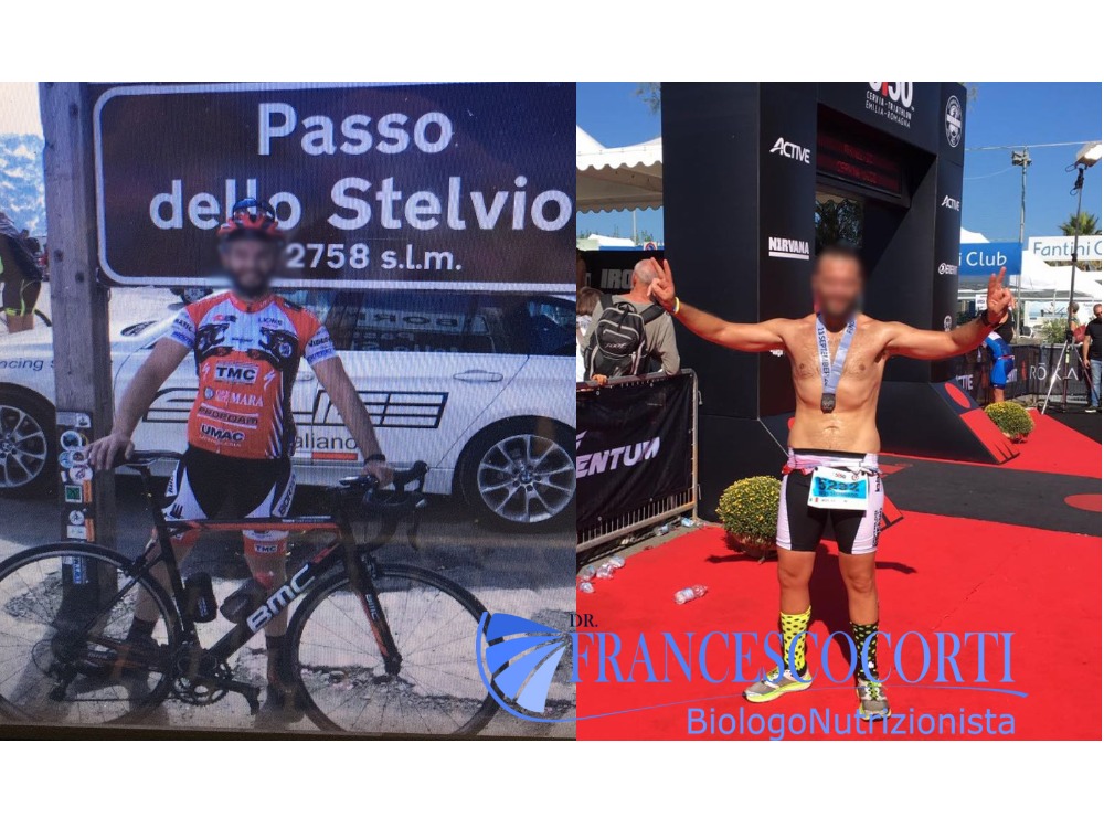 Atleta praticante sport di durata (ciclismo, corsa..). Dopo un programma di alimentazione mirata ha raggiunto un miglior rapporto peso-potenza (perdendo gran parte del peso sotto forma di massa grassa) e una migliore ‘salute’ metabolica.