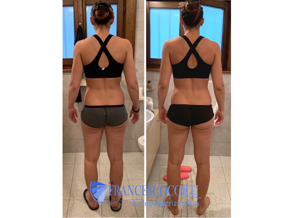 * nella foto non è visibile, ma a inizio percorso era presente un moderato accumulo di adipe a livello di cosce e glutei, che alzava la percentuale di massa grassa.